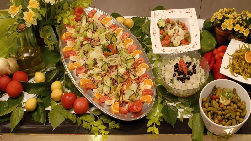 стол, предлагаются блюда средиземноморской и международной кухонь. |